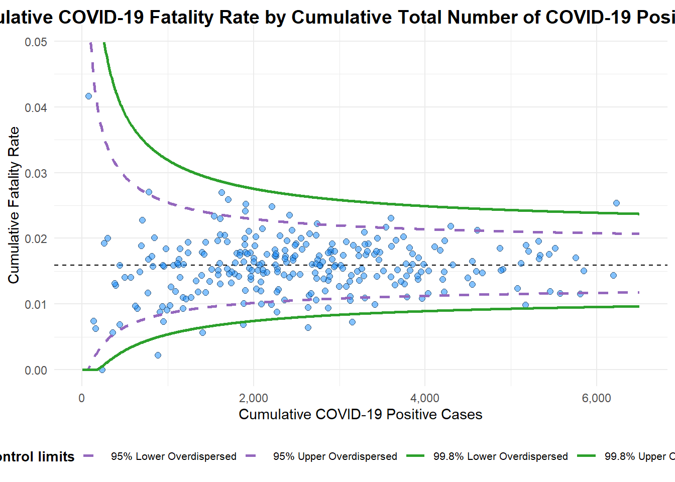 limit: plot limits (95 or 99).label_outliers: to label outliers (true or false).Poisson_limits: to add Poisson limits to the plot.OD_adjust: to add overdispersed limits to the plot.xrangeandyrange: to specify the range to display for axes, acts like a zoom function.Other aesthetic components such as graph title, axis labels etc.